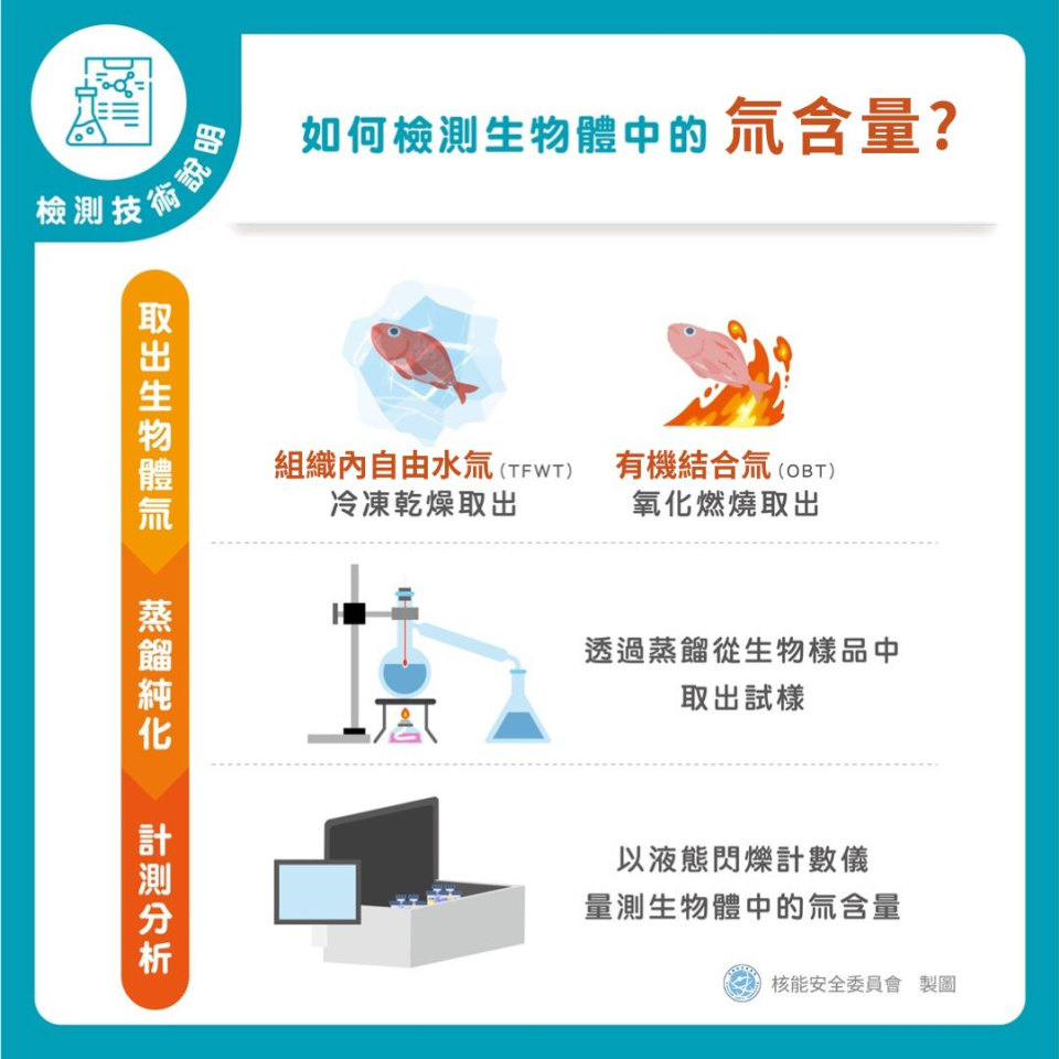 生物樣本經過冷凍乾燥,在低溫、真空狀態下,將冷凍後凝結在生物體中的水分昇華為水蒸氣,再將其取出,以量測水中氚含量的方式,進一步以液態閃爍計數儀(Liquid Scintillation Counter...